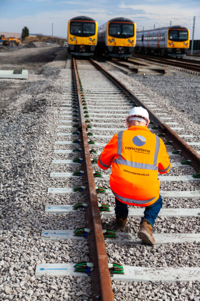 The sleepers were installed by local contractor KGJ Price and Concretene says its second-generation sleeper is already in development and that a 15% reduction in CO2 should be achievable. It added that very productive discussions had taken place with representatives from DBT, Network Rail, Vossloh, Arup, and others regarding the potential deployment of its sleepers in depots and on the network.