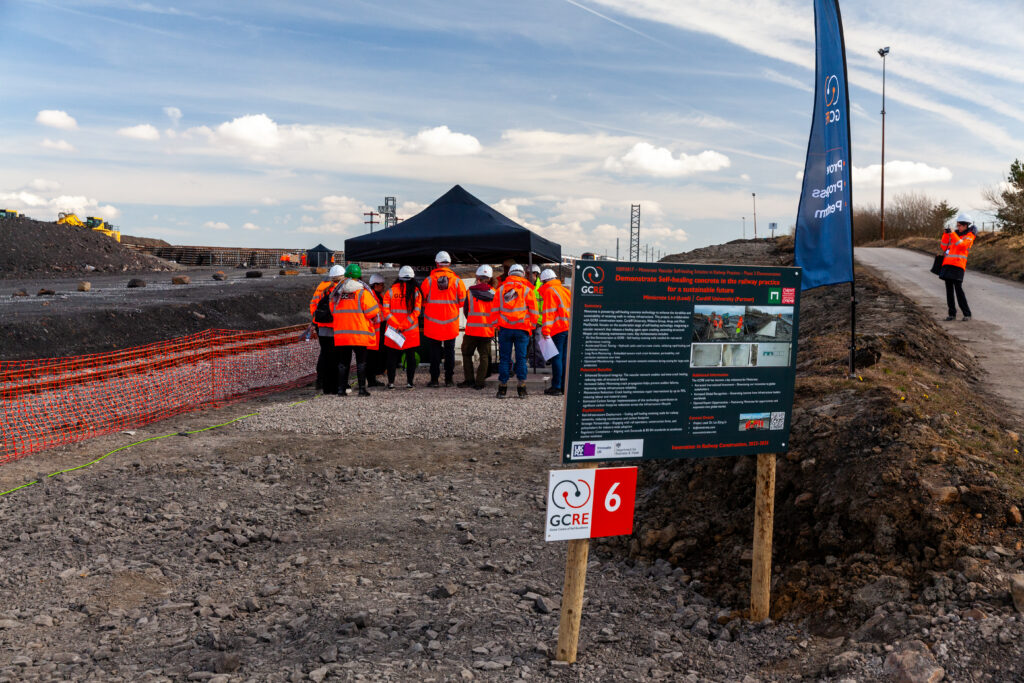 At the event, 12 projects took the opportunity to showcase their equipment and technology including self-healing concrete, new drone technology, and more cost-effective forms of electrification and signalling. The demonstrations were established across the extensive GCRE site, with two inside the centre’s offices, seven around the sidings near the main building, and three close to the boundary with Network Rail.