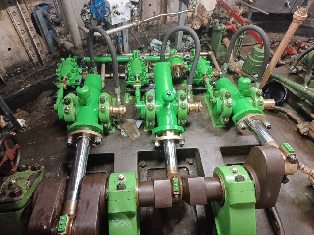 Measurement of hydraulic pressure revealed the peaks in the engines’ cycle and the new control equipment manages the hydraulic flow rate to match these varying demands. In addition, the engines now operate slowly, at 18rpm, with slow accelaration/deceleration to reduce strain on the gears.