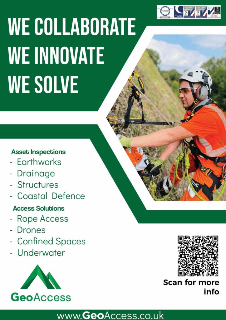 To extend our expertise beyond the cyclical annual inspection programme, we have launched GeoInspections. This service supports the rail industry by combining rope access techniques, vegetation clearance, and our inspection capabilities. With these integrated services, GeoInspections can deliver timely, accurate, and cost-effective geotechnical evaluations.